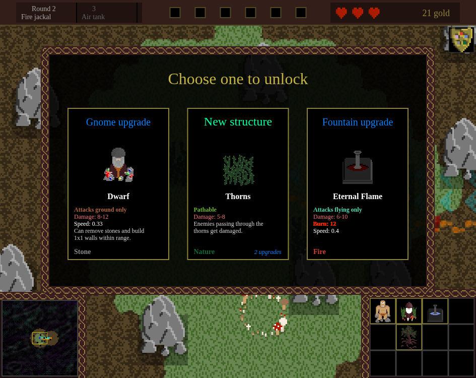 Quite fun! The aesthetic is nice and chunky :). Showing the area of attack of a "tower" on hover would be quite useful. And tooltips in general. When you get coins at round end, the black shadows on the water made me think at first that something was on fire! If the shadows were darkish blue instead of black I think it would be more clear. Keep up the excellent work!